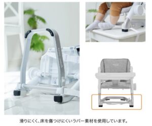 (椅子に座らせての飲食は絶対にさせません!椅子の足には分厚いゴムの滑り止めが付いており、床は傷つきません)